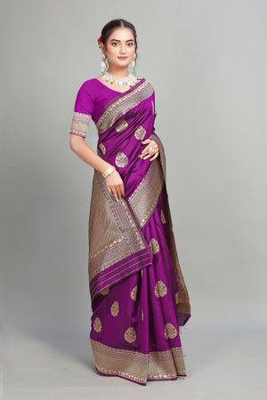 Purple Woven Banarasi Silk Saree