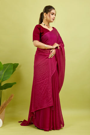 Red Stone Work Satin Chiffon Saree