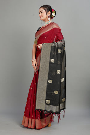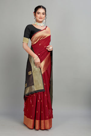 Red Toned Weaving Cotton Silk Saree
