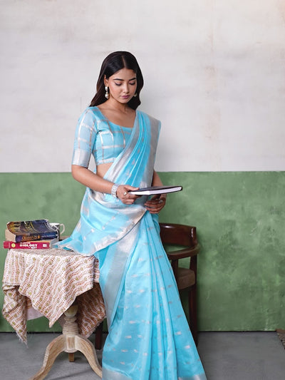 Sky Blue Linen Cotton Saree