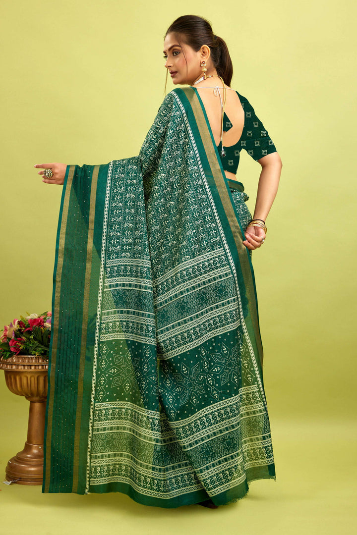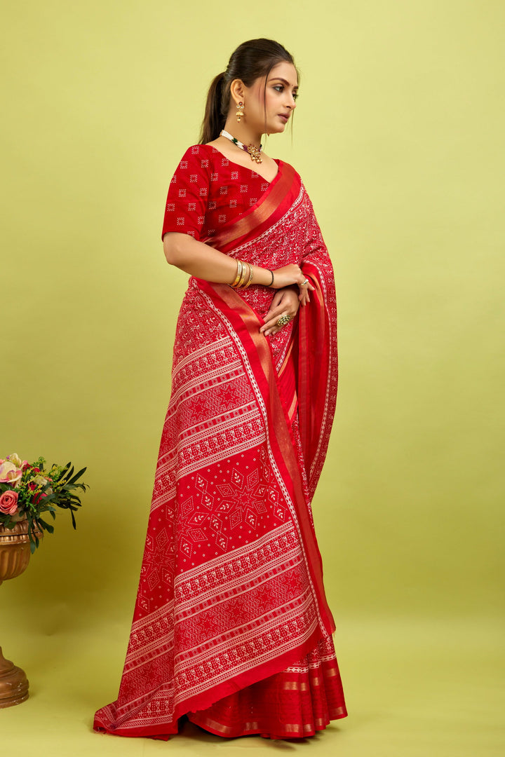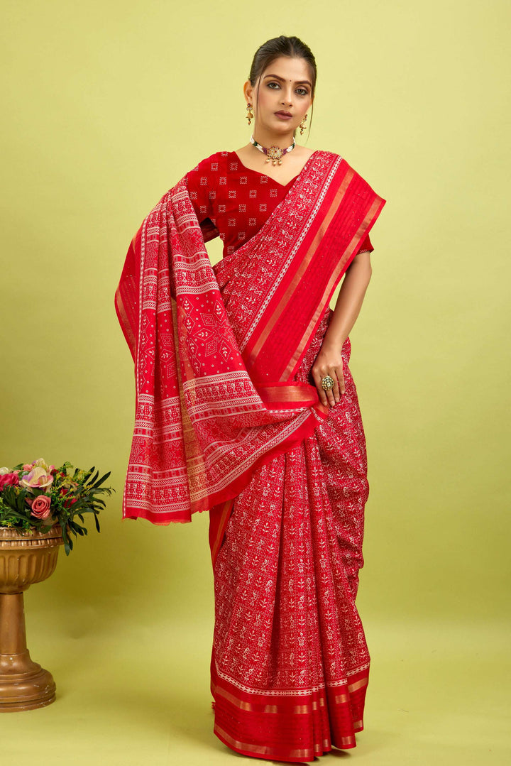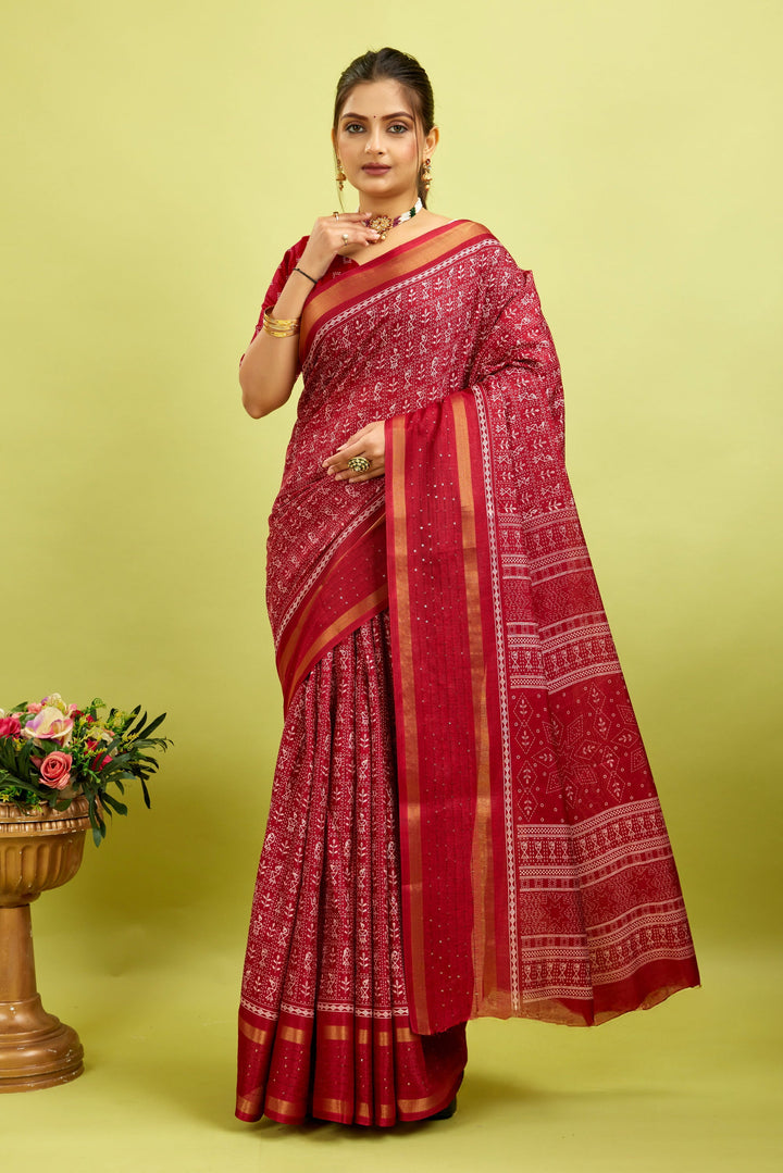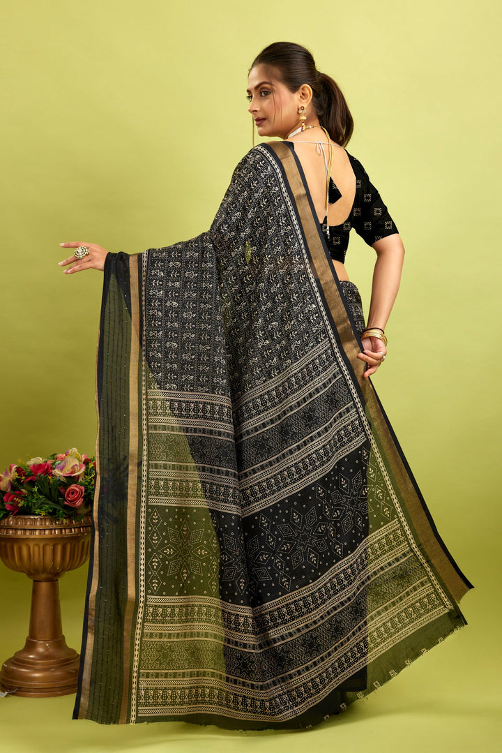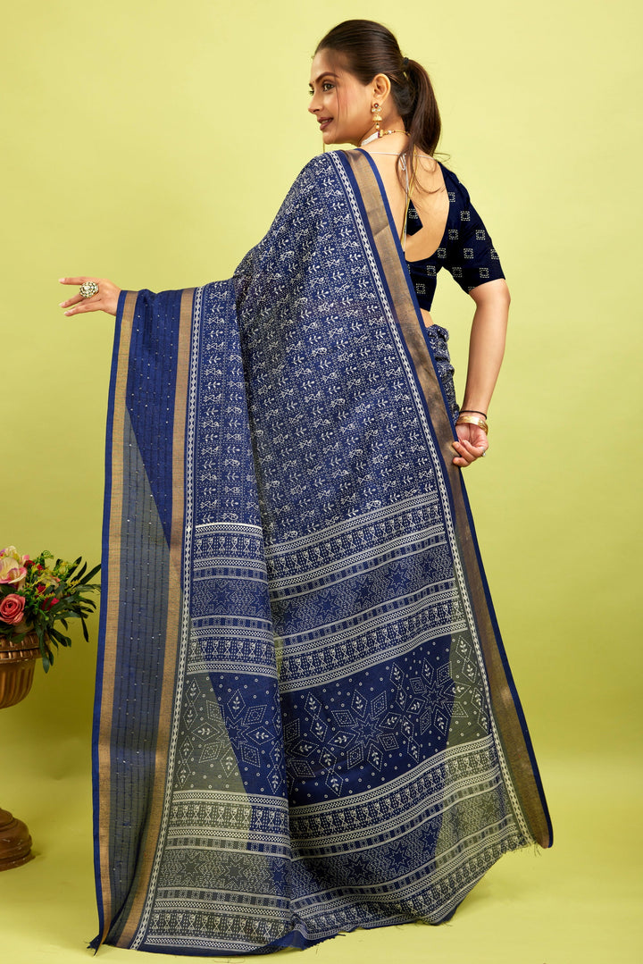 Made from a soft, high-quality cotton-silk blend, this saree offers a comfortable and breathable fit. Its natural moisture-wicking properties keep you cool and dry all day, making it perfect for everyday wear while providing long-lasting comfort.
