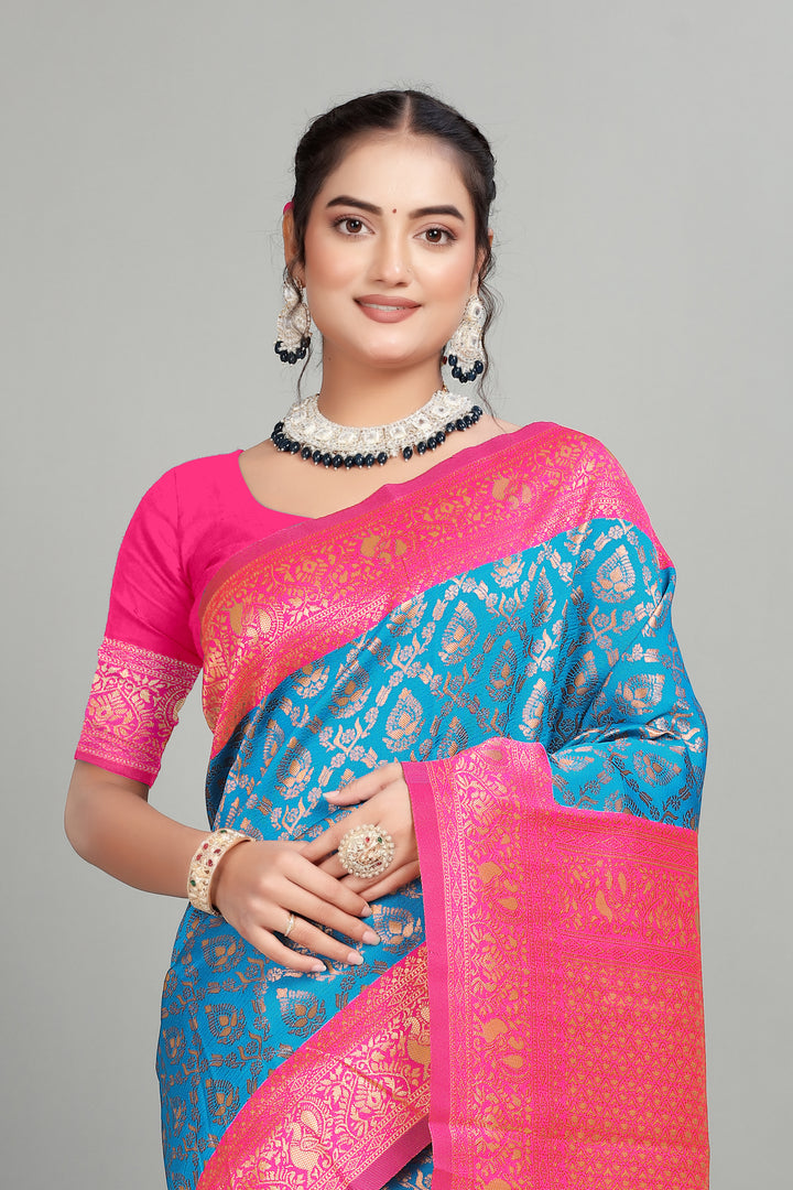 Blue Woven Banarasi Silk Saree