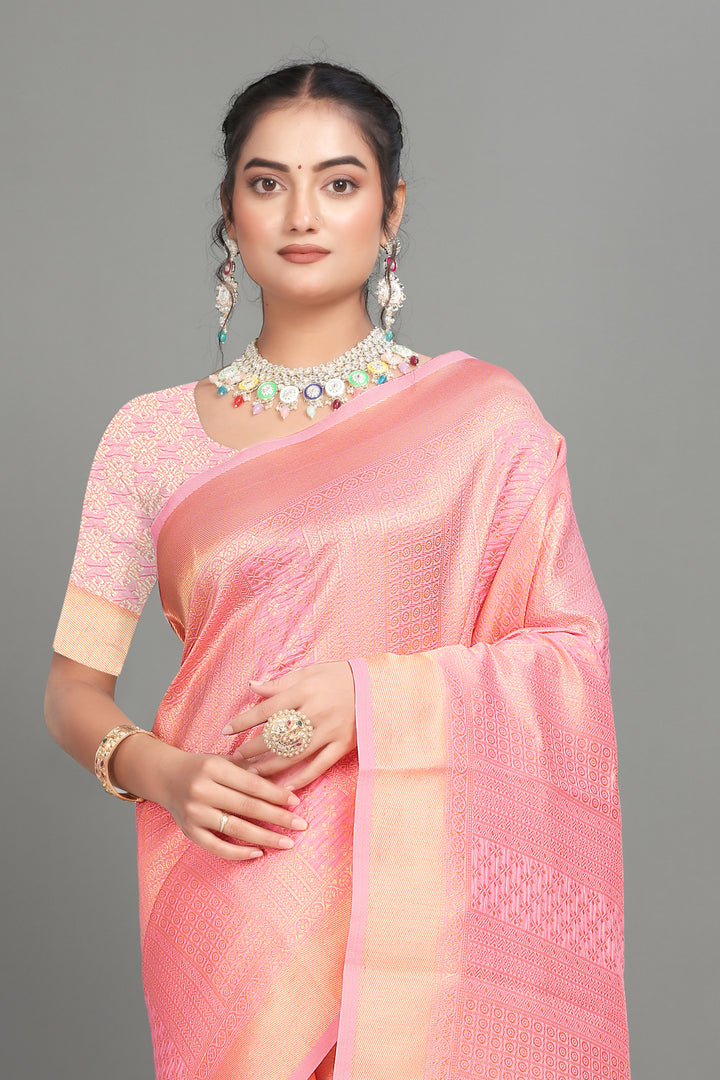Baby Pink Woven Banarasi Silk Saree