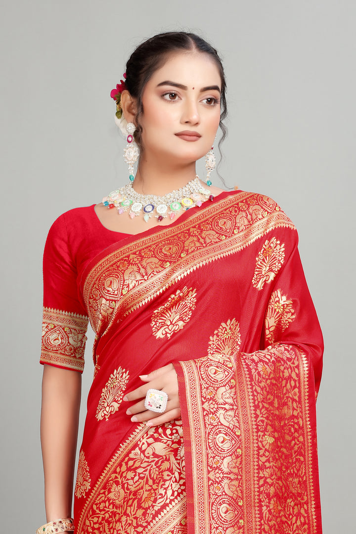Red Woven Banarasi Silk Saree