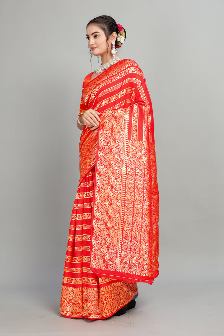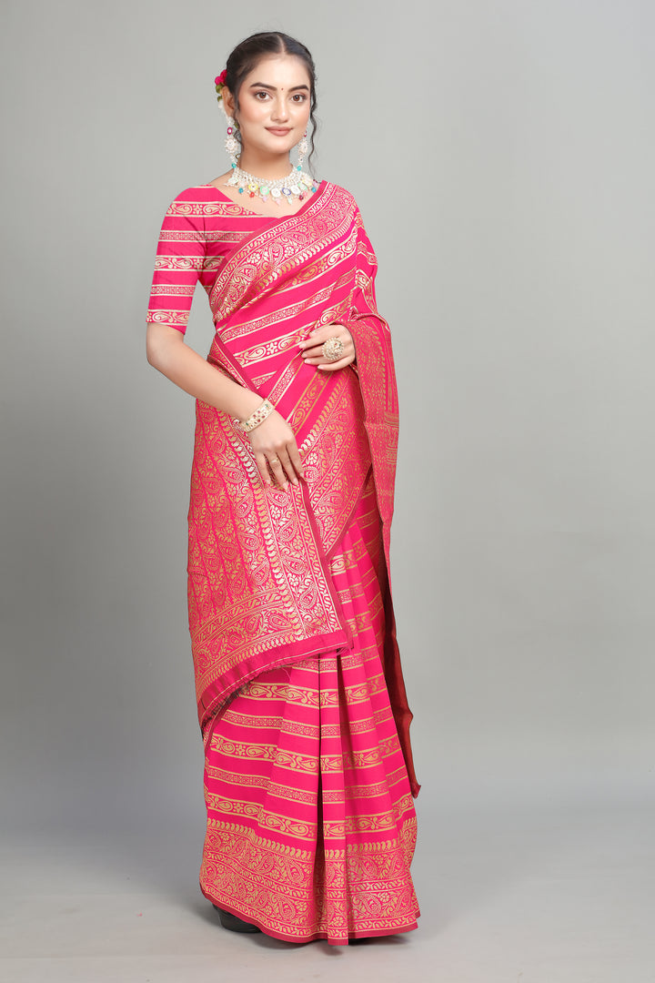 Experience timeless elegance with our soft lichi silk saree, renowned for its smooth texture and graceful drape. Crafted from premium lichi silk, this saree offers a lightweight yet lustrous finish, ensuring comfort and sophistication for any occasion. Its breathable fabric maintains a refined appearance while providing ease of wear throughout the day. Ideal for traditional events or formal gatherings, this saree blends classic appeal with expert craftsmanship, making it a valuable addition to your wardrobe.