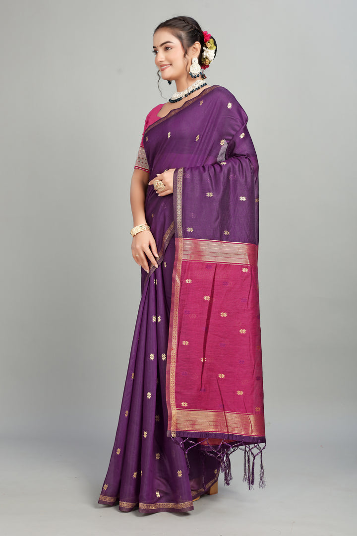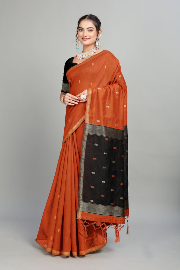 Experience the elegant softness of this Soft Cotton Silk Saree, designed to enhance your look with subtle charm and a refined texture. The gentle sheen and smooth drape create a sophisticated appeal, making it perfect for festive occasions or casual gatherings. This saree combines graceful aesthetics with lasting quality, offering a timeless addition to your wardrobe.